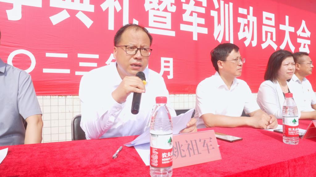 学院党委书记王玉才,党委副书记、院长姚祖军分别为2023年新训团各营授旗,并在两校区发表讲话。王玉才书记和姚祖军院长代表学院向全体新生表示热烈欢迎,向新生的师长亲朋致以诚挚问候,并与新生们共同回顾了学校70年的办学历程,介绍了学院的总体概况和办学理念,为新同学勾勒出学院发展的整体图景,激发了新同学爱校荣校的自豪感和自信心。