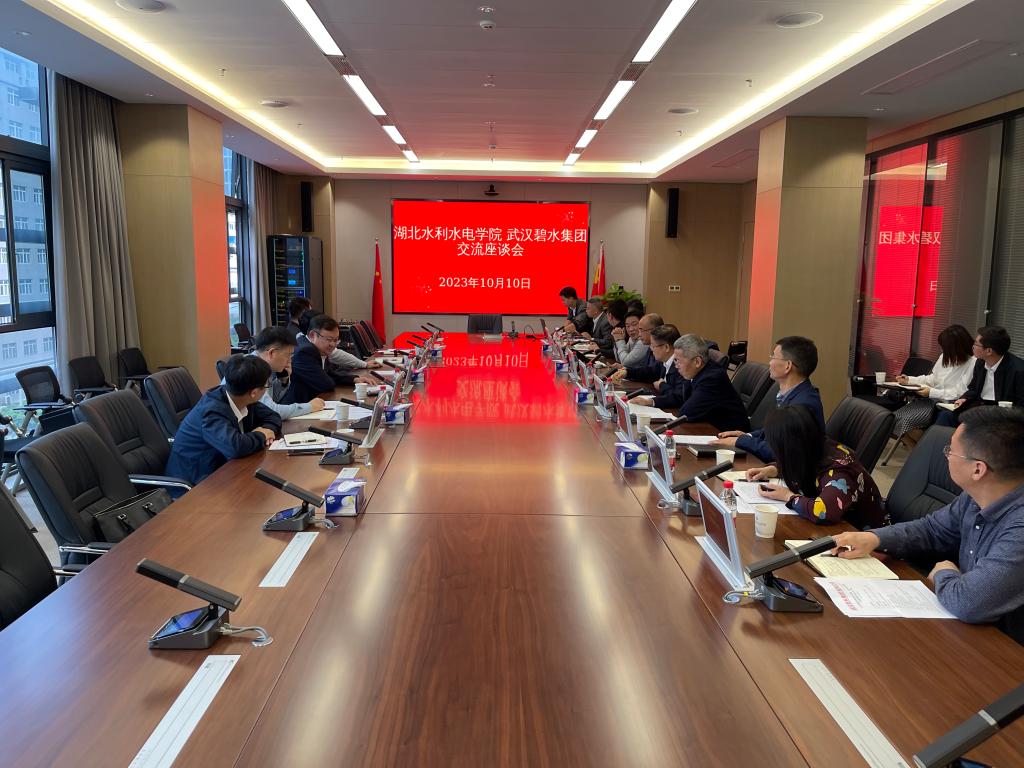 10月10日下午,学院党委书记王玉才,党委委员、副院长庹祖明,党委委员、党委办公室主任张博携院办、后勤、产业等职能处室负责人赴武汉碧水集团有限公司进行座谈交流。武汉碧水集团党委书记、董事长张梦化及部门负责人出席座谈活动。