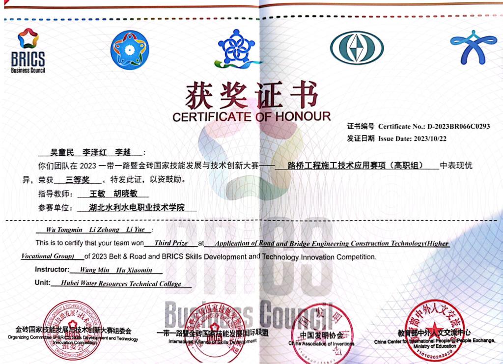 此次竞赛,分设中职组、高职组和本科组,共有179所院校参加,其中高职组代表队有227支,beat365经过前期院赛、省赛选拔,由21道桥班三位同学组成的团队赴古城西安参加国赛比拼。经过知识问答竞赛、路桥工程施工案例分析和路桥工程施工技术模拟竞赛三个模块的激烈角逐,beat365代表队最终获得了团体三等奖的优异成绩。