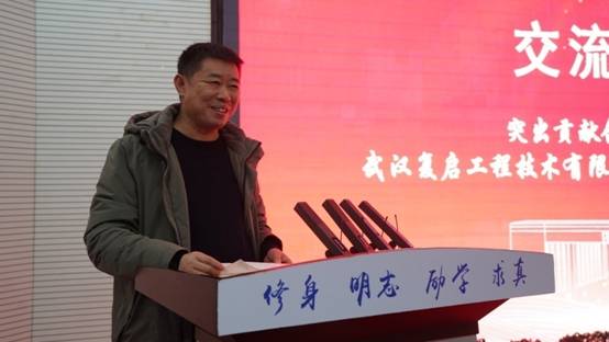 突出贡献合作单位代表、武汉复启工程技术有限公司210班校友黄彦林作交流发言