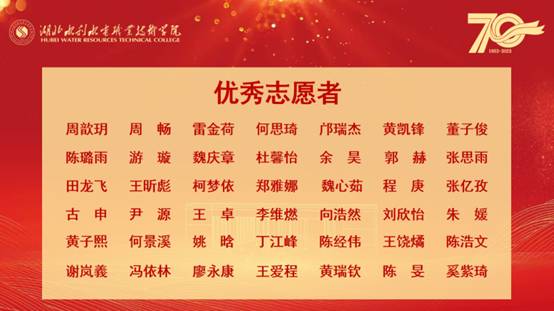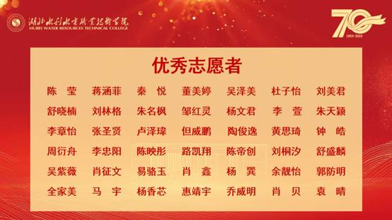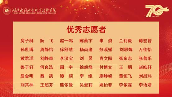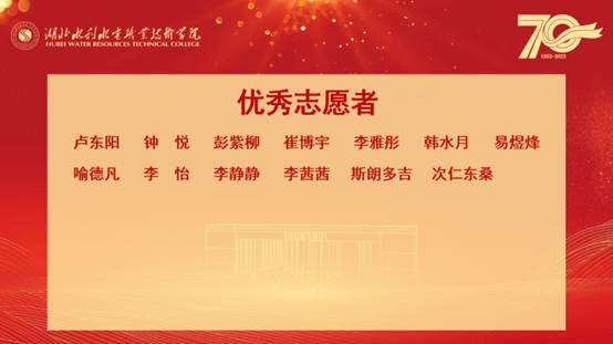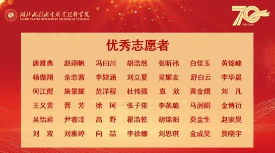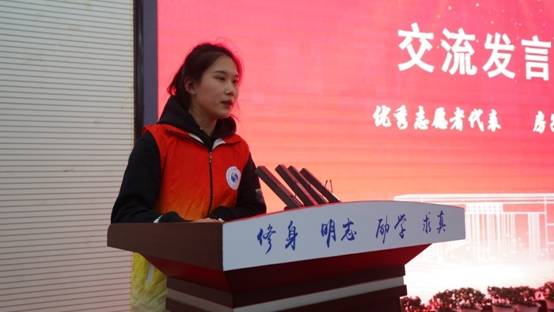 优秀志愿者代表房子群作交流发言,她表示作为水院青年学子,将坚定理想信念、练就过硬本领,刻苦学习,脚踏实地,以自己所学服务社会,在苦干实干巧干中成就一番事业;作为新一代水院人,将以学院办学70周年为新的起点,在实现中国梦的伟大奋斗中展现自身价值,努力书写无愧于时代的华彩篇章。