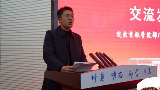 突出贡献学院部门代表、院办公室主任张强作交流发言,他提到在过去一段时间里,无论是面对时间紧、任务重的校庆筹备工作,还是面对全国清洁能源产教融合共同体的筹备与举办,院办公室始终坚守在工作第一线。在未来,院办公室将以70周年校庆为契机,坚定信念、矢志奋斗、默默奉献,为学院高质量发展贡献全部力量,不负水院精神的传承,不负学院领导的厚爱。