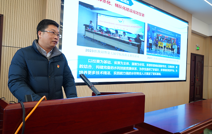 为迎接省水利厅党建工作考核,打造党建工作亮点,凝练党建工作品牌,1月22日,学院召开迎接省水利厅2023年度党建工作考核暨首届“水之蓝”新闻故事讲述会。省水利厅机关纪委书记李丽、学院在家班子成员出席会议,全体中层干部和各支部党员代表参加会议。会议由学院党委委员、党委办公室主任张博主持。