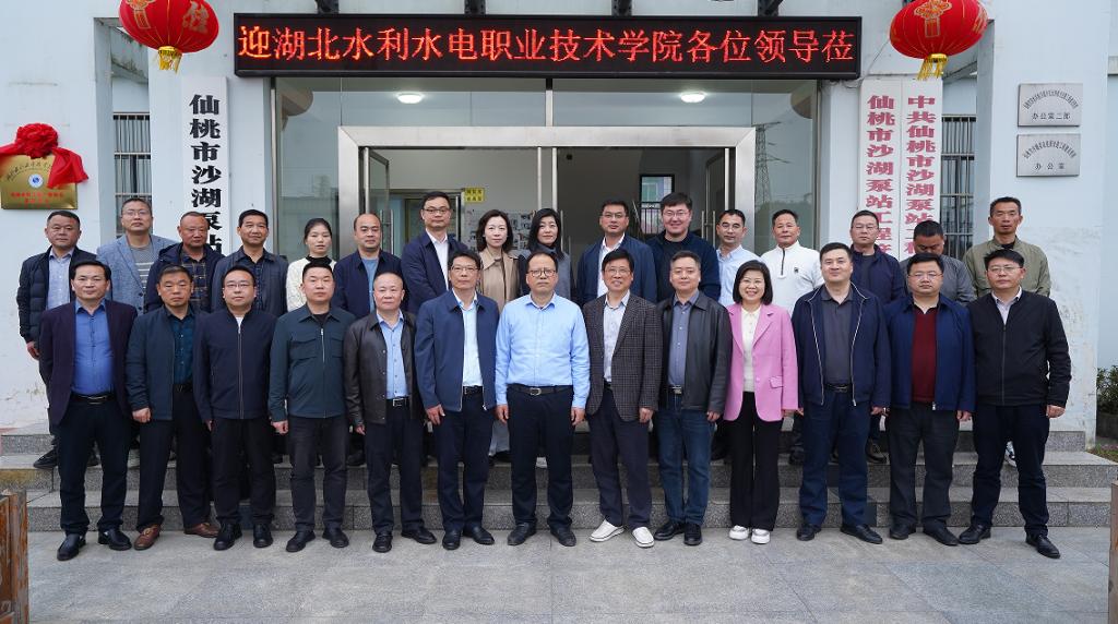 3月22日,党委副书记、院长姚祖军率队赴仙桃沙湖泵站、大垸子闸调研,并与仙桃水利和湖泊局负责人共同为“仙桃水利工程产教融合实践中心”揭牌。