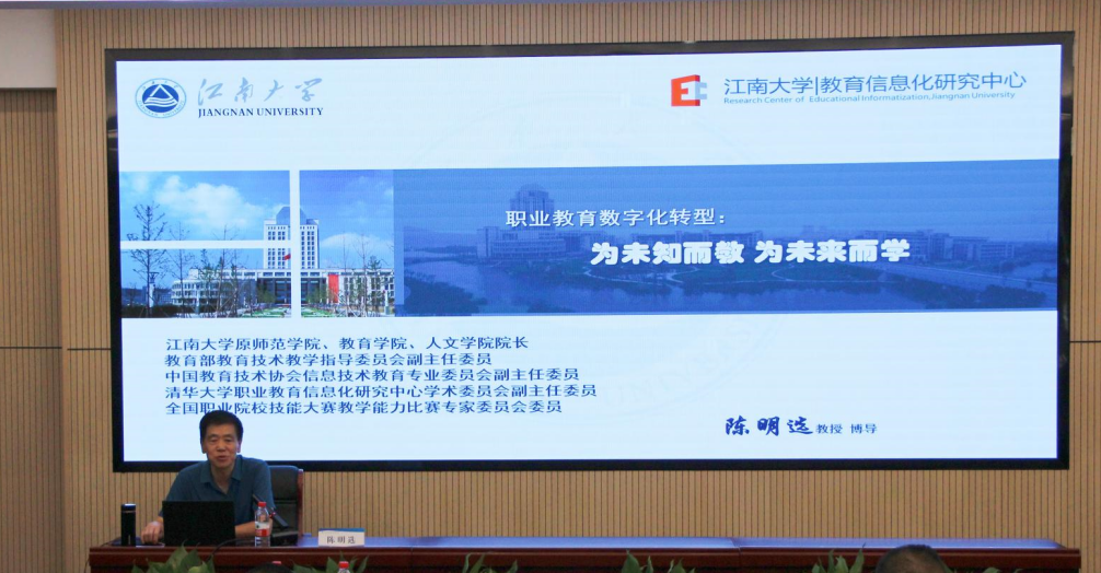江南大学陈明选教授作题为《职业教育数字化转型:为未知而教为未来而学》讲座