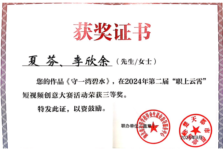 此次大赛在湖北省教育厅的指导下,由极目新闻和湖北省高等学校毕业生就业指导服务中心联合主办,旨在激发职业院校学生的创新潜能和实践能力,分享技能成才故事,展现职业教育风采。大赛吸引了全省50多所高职院校师生的踊跃参与,共征集到超过600部创意无限的短视频作品。经过层层筛选与严格评审,由beat365教师夏芬和24届水电站运行与智能管理专业学生李欣余共同创作的作品《守一湾碧水》,凭借其新颖独特的视角、内涵深刻的主题表达以及细腻精湛的拍摄技艺,赢得了评审专家的青睐,荣获大赛三等奖。