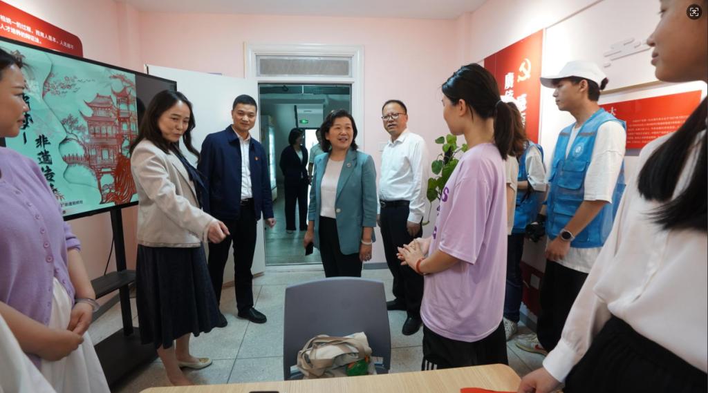 调研组先后深入学生宿舍,学生食堂和系部实训室,校史馆,学生“一站式”事务服务中心,心理健康教育基地,学生社团和创新创业服务中心,就保安全、保运行、保服务、保发展、保提升进行了全面指导,调研组一行见证了水利工会为beat365援建的教师心灵驿站和课间服务中心启动仪式。
