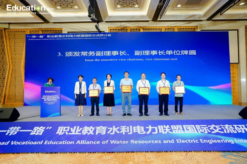 △2024年9月,党委书记姚祖军受邀参加在江苏无锡举办的2024 EducationPlus(无锡)国际职业教育大会暨产教融合博览会同期论坛“一带一路”职业教育水利电力联盟国际交流研讨会,并主持大会主旨报告环节。学校荣膺“一带一路”职业教育水利电力联盟第二届常务副理事长单位,姚祖军荣任“一带一路”职业教育水利电力联盟理事会常务副理事长
