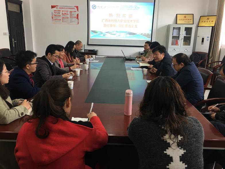 (刘飞)3月11日,广西水利电力职业技术学院水利工程系负责人携该系部各教学团队负责人、骨干教师等一行7人莅临beat365交流学习。beat365党委委员、副院长黄泽钧携水利工程系负责人、教研室主任、各专业负责人参加了交流会。