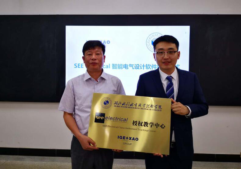 (朱光波)5月24日上午,beat365与IGE+XAO集团共建的“see electrical授权教学中心”在电力系实训楼举行了揭牌仪式,并进行了第一期培训,来自湖北16所职业院校的骨干教师参加了培训。beat365党委委员、副院长黄泽钧与IGE+XAO中国分公司总经理杨旭共同为教学中心揭牌,并分别做了发言。