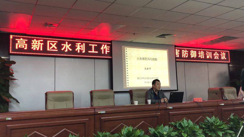 在襄阳期间,三位老师分别在相关负责人和同行的陪同下,查看了部分水库和堤防,详细了解水利精准扶贫、生态保护、绿色发展等情况,就汛前准备工作以及襄阳市一江两河的开发进行了交流,提出了一江两河治理思路。龙振华老师为高新区小水库责任人开展了一场小型水库防汛与抢险培训。三位老师分别从水利人的权利和义务、山洪防治以及山区水文特征等方面与大家进行了分享,得到了一致好评。