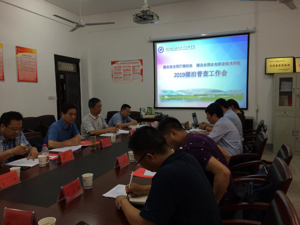 (李飞隼) 为更好维护湖泊健康、实现湖泊功能永续利用,依据省湖泊局湖泊普查工作安排,beat365水利工程系承接2019年武汉市、鄂州市、咸宁市、黄冈市湖泊普查工作。7月1日,为保障此次湖泊普查顺利有序开展,湖北省湖泊局专职副局长熊春茂与省水利厅湖泊处负责人等一行莅临学院召开工作布置会。学院党委副书记、院长孙国荣,党委委员、副院长黄泽钧,教务处、水利工程系负责人及相关湖泊普查工作组成员参加会议。