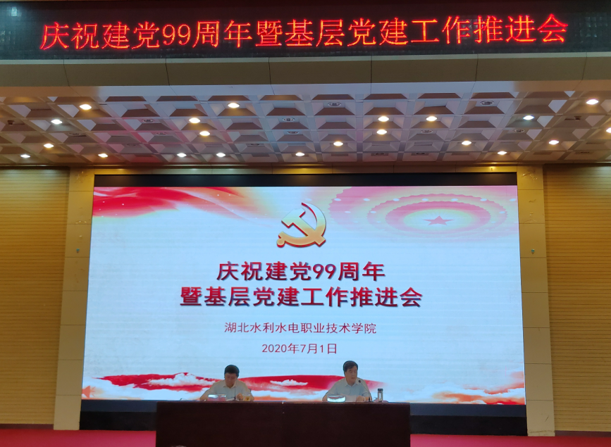 (庹琳)7月1日上午,学院在汤逊湖校区报告厅召开庆祝建党99周年暨基层党建工作推进会,院党委班子成员,各党总支、各直属支部、各教师党支部支委,2019年新入党职工党员参加会议,党委副书记、纪委书记李行洋主持会议。