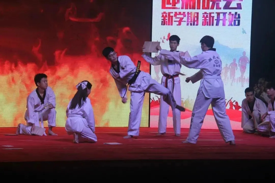 WDC舞蹈协会以一支热情动感的开场舞迅速点燃了现场气氛,拉开了本次迎新晚会的序幕。悦耳动听的歌曲串烧《不如你》、活力十足的舞蹈《KDR》纷纷上演,华丽的舞台,耀眼的灯光,动人的舞蹈,悦耳的歌声,在一颦一笑间尽显青春活力。跆拳道协会带来的跆拳道串烧《有你有我有跆拳》勇武有力,动作到位,气势逼人,赢得了现场阵阵喝彩。建筑系带来的灯光秀情景剧《影子戏》以独特的形式,充分展现了水院学子的日常生活,鼓励大家积极向上,珍惜大学时光,得到了同学们热烈的欢呼和掌声,将本次晚会推向了高潮。