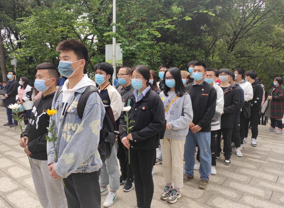 在烈士纪念园内,全体师生肃立默哀,由支部团员代表向革命先烈敬献花篮,全体同学在团旗下庄严宣誓,并依次敬献鲜花,表达对革命烈士的深切悼念和无限敬仰之情。随后,各班级团支部代表在现场举行主题团日活动,讲感受谈体会。