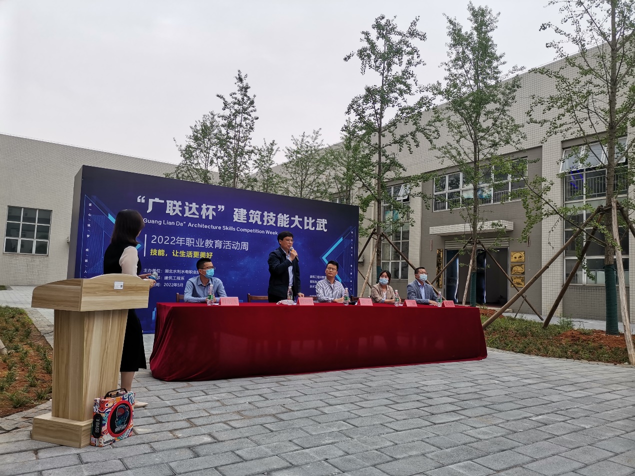 (余丹丹)5月12日,为了贯彻习近平总书记关于职业教育的重要指示精神,值此2022年职业教育活动周之际,建筑工程系顺利举行了“广联达杯”建筑技能大比武活动开幕式。学院党委委员、副院长庹祖明,建筑工程系负责人、广联达科技股份有限公司华中区总监、中叶居建筑装饰有限公司总经理、美加社区党总支部副书记、建筑工程系全体技能竞赛裁判老师及部分参赛选手出席了本次开幕式。