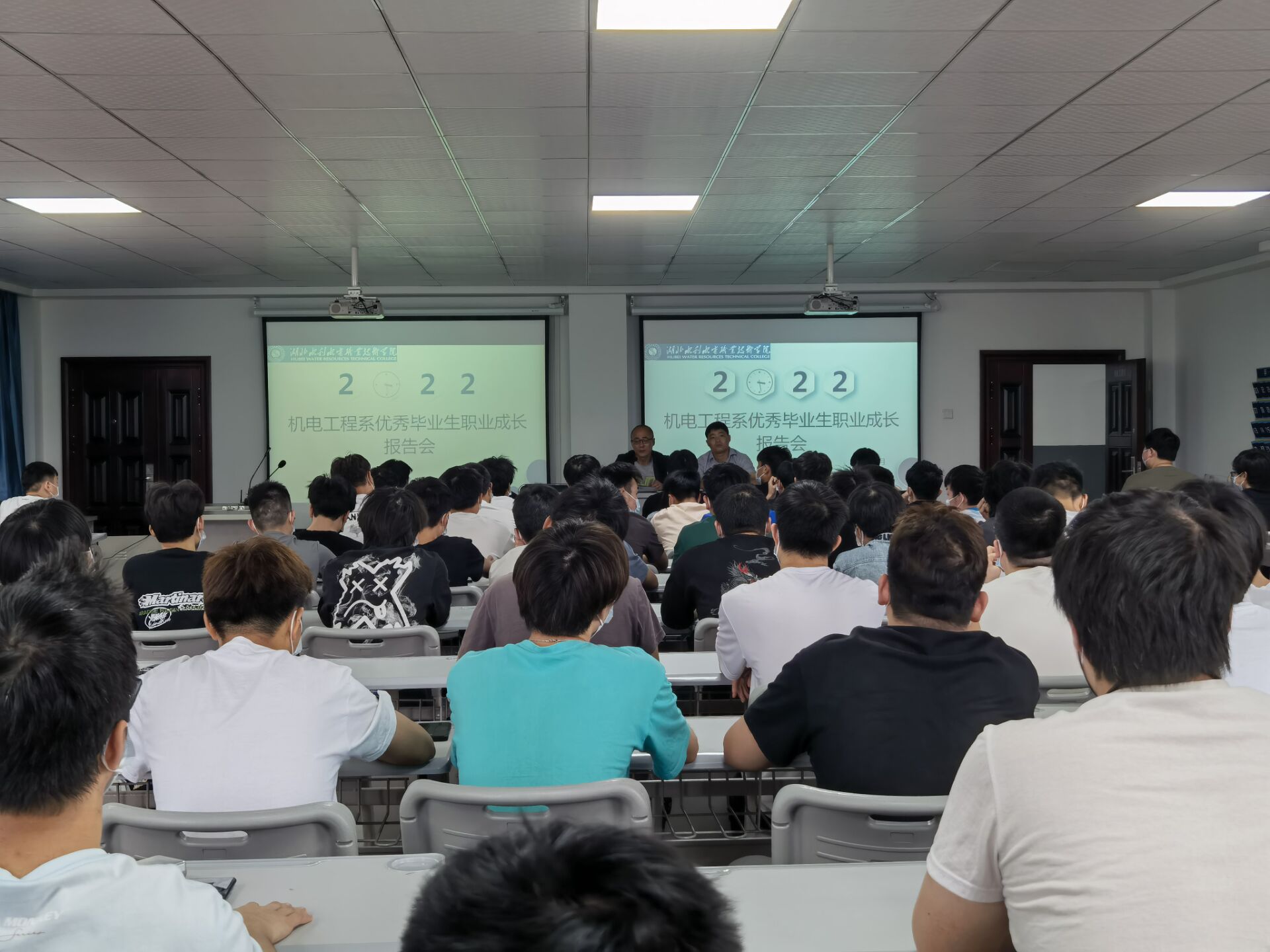 (黄莉 郝玉龙)5月12日下午,机电工程系在南湖校区机电楼301培训教室采用线下+线上的形式,召开了杰出校友职业成长分享报告会。机电工程系特邀2012级机电一体化技术专业三班毕业生操志双回到母校,分享了他的职业成长经历。机电工程系2020级机电一体化技术专业100名学生及相关专业教师参加线下报告会,线上近100名学生参加。