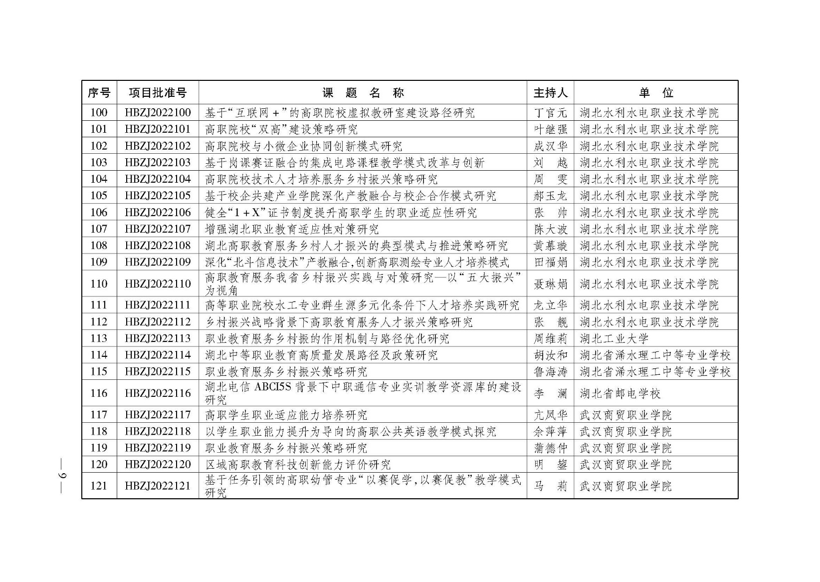 (冯伦)日前,从湖北省中华职业教育社《关于2022年度课题研究项目立项的通知》(鄂社字[2022]6号)获悉,beat365申报的13项课题研究项目获批立项,名单如下: