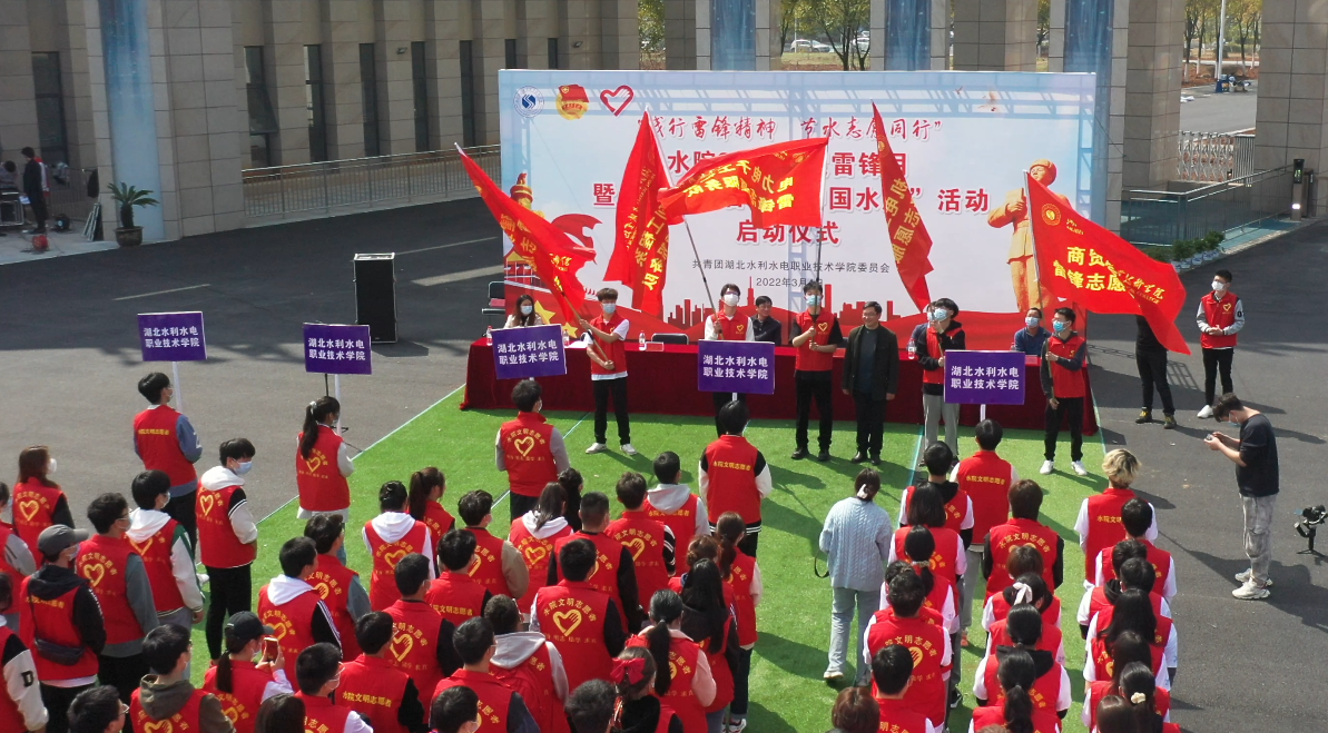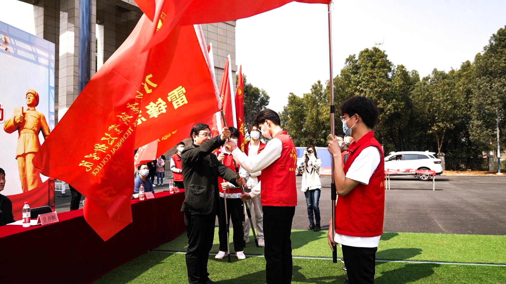 启动仪式上学工处负责人宣读《关于开展2022年度“践行雷锋精神,节水志愿同行”雷锋月系列活动的通知》,学生志愿者代表带领全体志愿者宣誓。随后冷涛对各系部志愿服务队进行授旗。