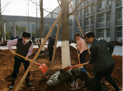 后勤服务中心)最是一年春光好,植树添绿正当时。在第44个植树节来临之际,3月10日,学院积极组织开展了2022年春季“3.12”义务植树活动,以实际行动践行生态文明理念,强化师生种绿、爱绿、护绿意识。学院党委班子全体成员和各部门负责人参加了此次植树活动。