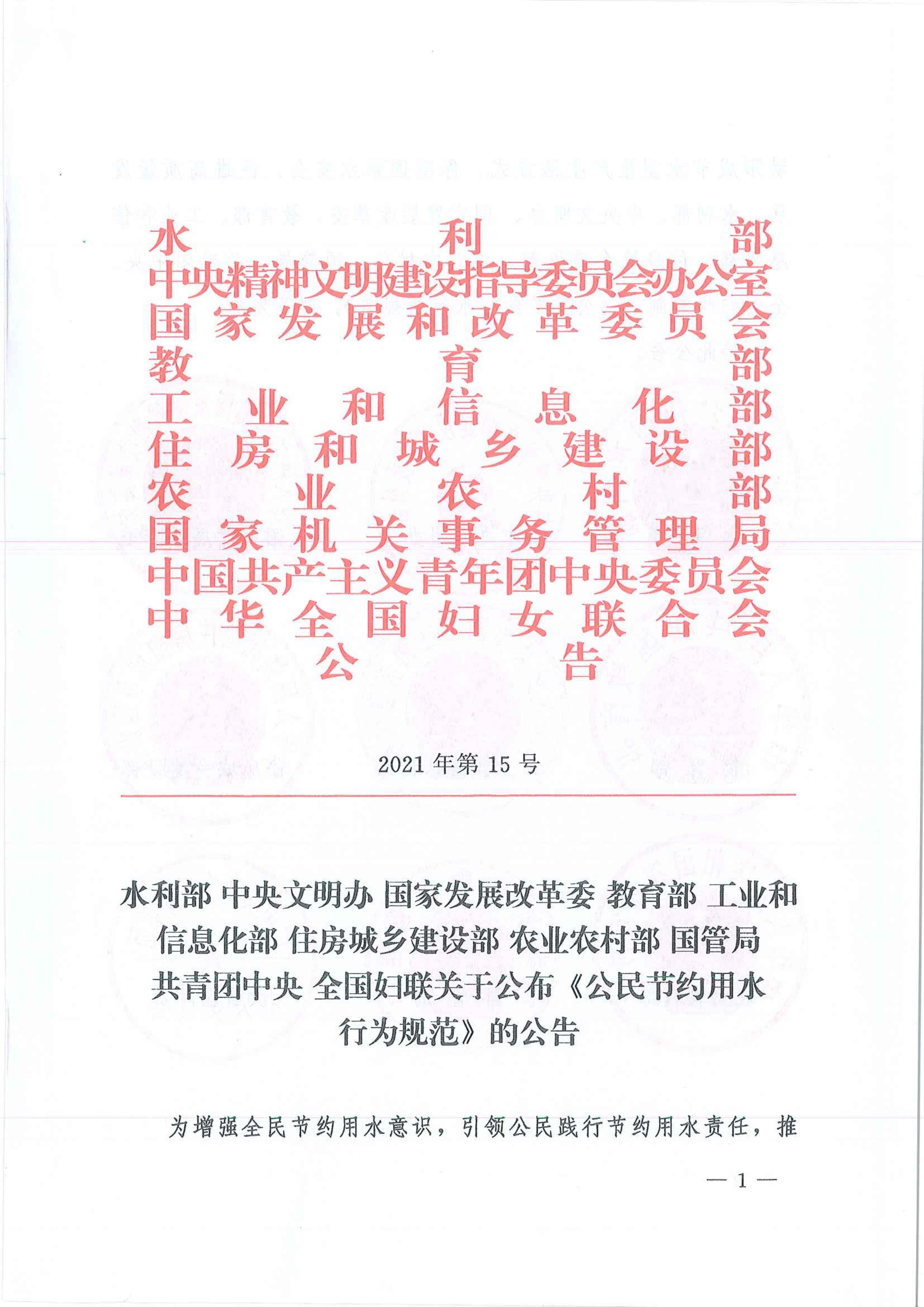 公民节约用水行为规范