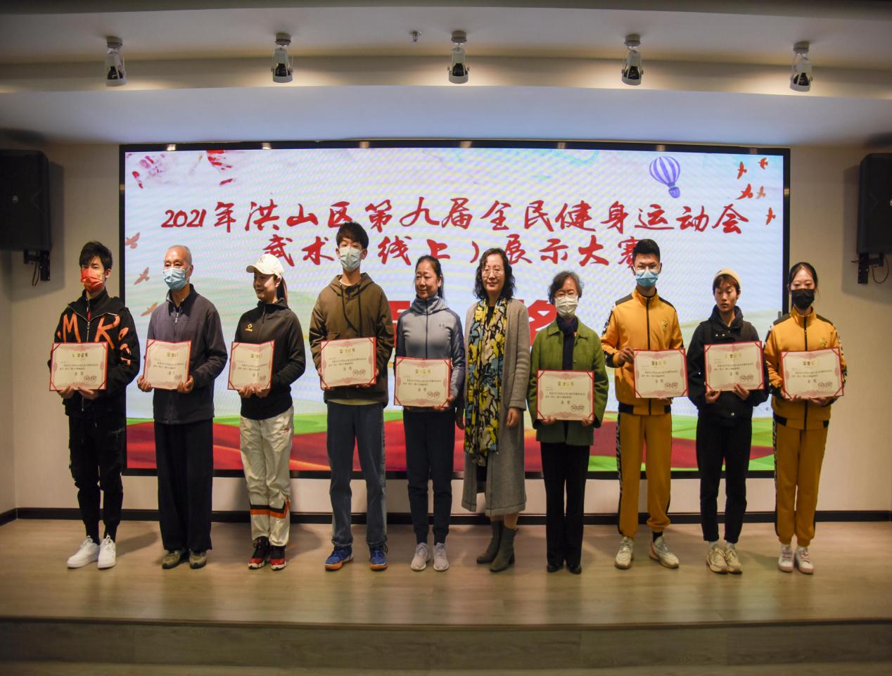 (基础课部)12月4日,洪山区第九届全民健身运动会武术(线上)展示大赛在华润置地公馆养乃世家会议厅举办颁奖仪式,beat365选送的“武术操”在此次展示大赛中喜获金奖,并由组委会授予“优秀组织奖”。