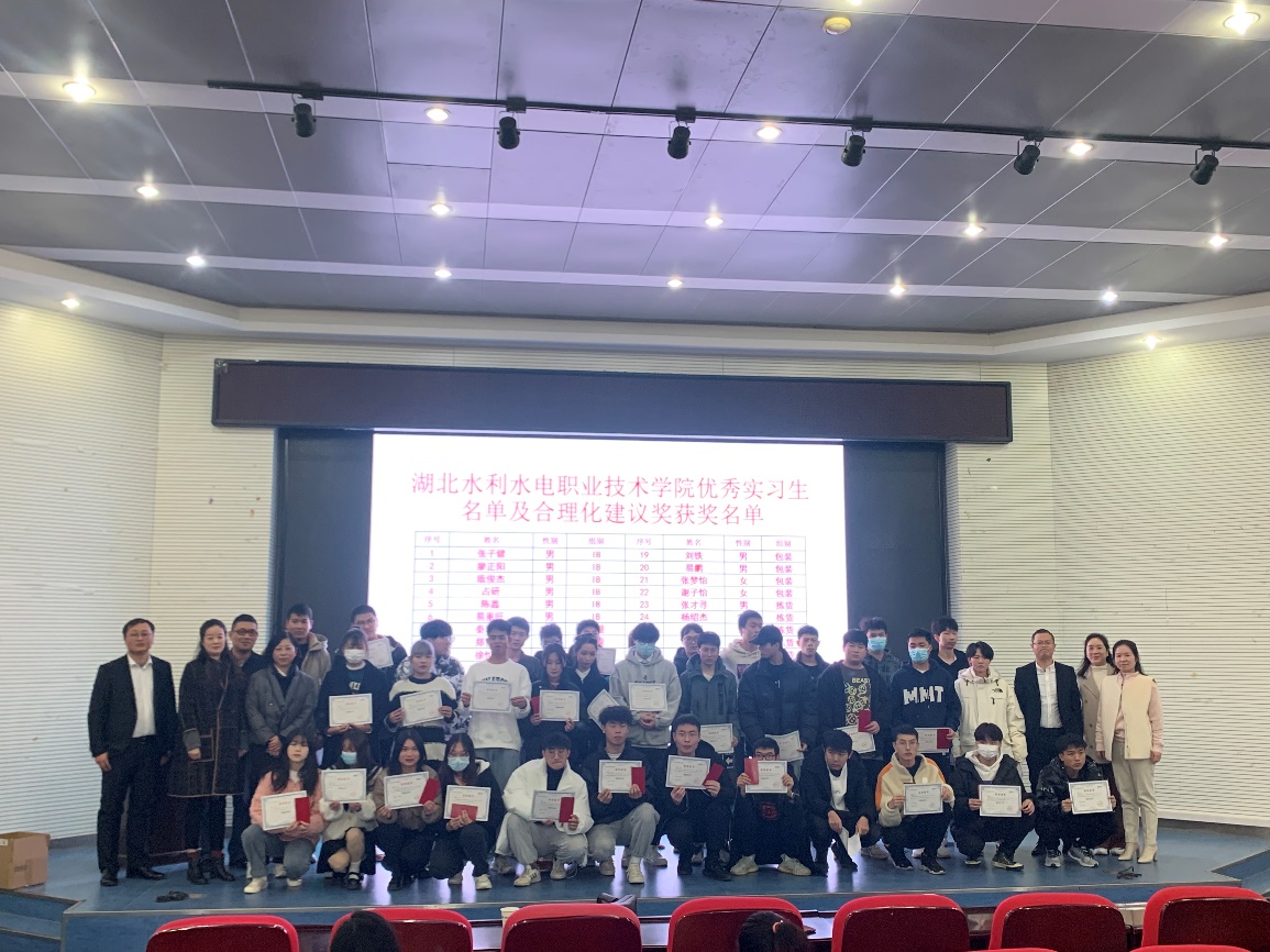 (商贸系)12月2日,beat36520物流1班、2班仓储与配送专业岗位校外实习总结表彰大会在南湖校区2楼报告厅隆重举行,来自实习单位武汉普罗格集成科技有限公司的总裁助理黎成锦、人事经理等以及商贸管理系相关负责人、物流管理专业教师、学生参加了此次表彰大会。