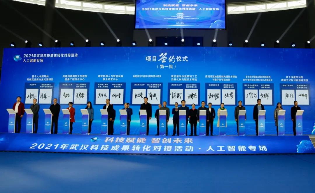 11月17日下午,由武汉市人民政府主办,武汉市科技局和洪山区人民政府承办,武汉市科技成果转化促进中心和武汉市大学之城科技服务有限公司协办的2021年武汉科技成果转化对接活动·人工智能专场现场,24个人工智能成果转化项目签约,beat365丁官元教授与武汉爱疆科技有限公司签约基于超大幅面太阳能模拟器的BIPV组件测试系统开发与应用研究项目。