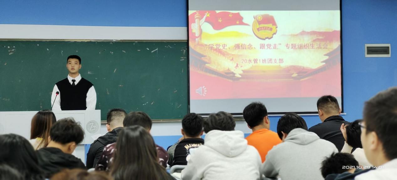 (水利工程系)为进一步规范共青团“学党史、强信念、跟党走”专题组织生活会程序,确保各系团支部会议形成实效,10月29日下午,院团委选取水利工程系20水管1班召开2021年度共青团“学党史、强信念、跟党走”专题组织生活会示范会议。院团委、水利系相关负责人、全体专兼职辅导员和在校班级团支书参加示范观摩活动。