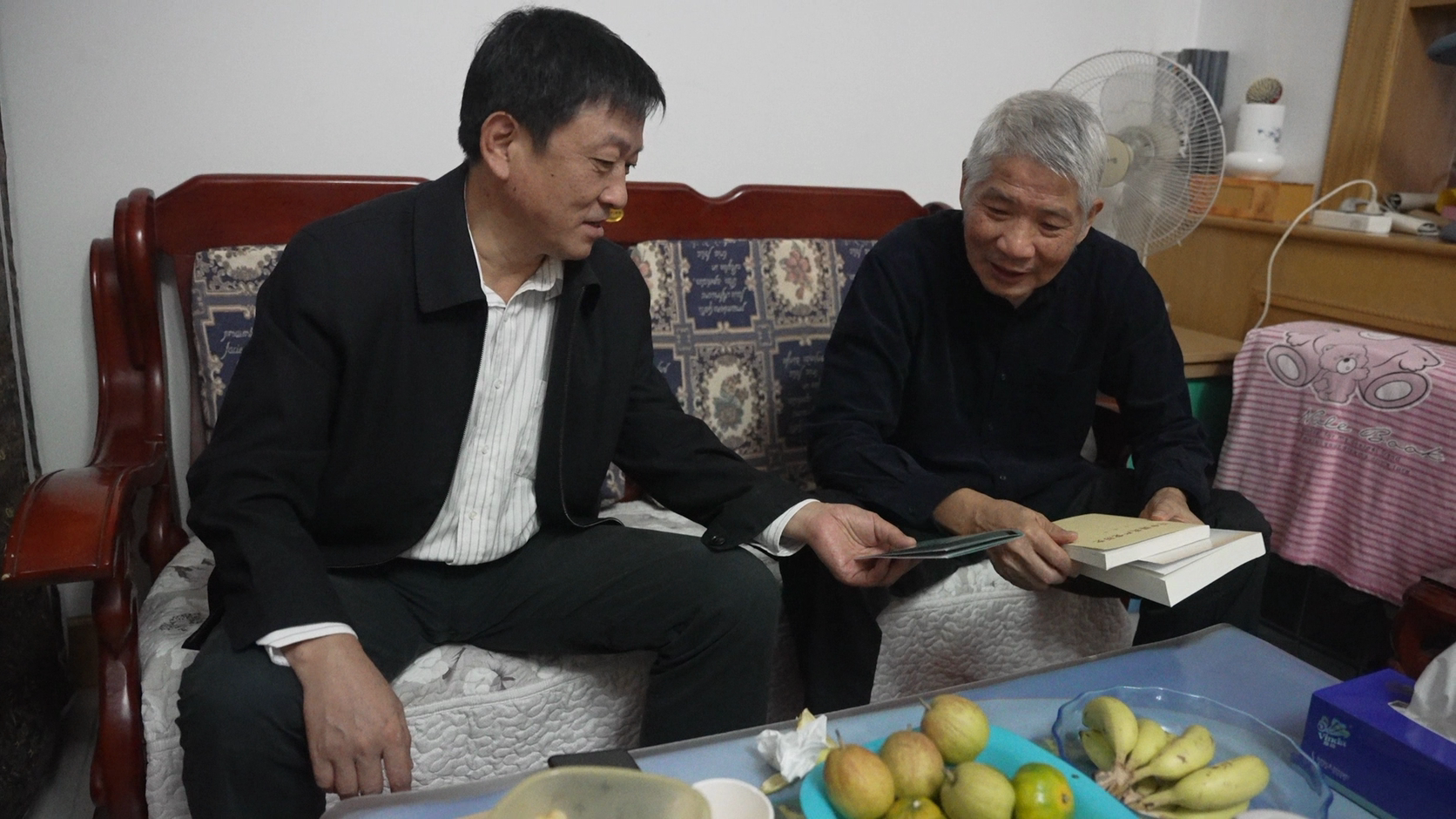 在老职工陈永忠的家中,甘齐顺与陈永忠同志促膝长谈,面对面了解老同志的生活情况和健康状况,倾听老同志心声和意见建议,希望他保重身体、安享晚年。
