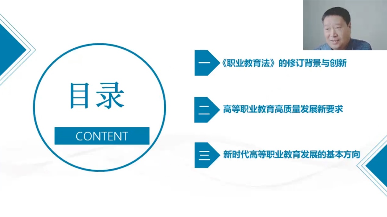 (成汉华)为深入贯彻新修订的职业教育法,全面准确解读新职业教育法,持续推进依法治教、依法办学,6月22日,学院邀请刘正安、李梦卿两位知名职教专家,面向学院全体教职工开展学习贯彻新职业教育法专题培训。培训活动线上线下同步进行,学院党委委员、副院长黄泽钧主持培训。