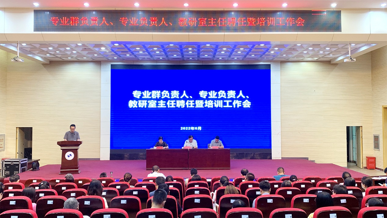 (教务处)6月24日,学院召开专业群负责人、专业负责人、教研室主任聘任暨培训工作会,院党委副书记、院长王玉才,党委委员、教务处处长丁官元,党委委员、人事处处长陈鲁莉出席会议。各系部主任、教学主任、新选聘的专业群负责人、专业负责人、教研室主任、教务处负责人员参加会议。