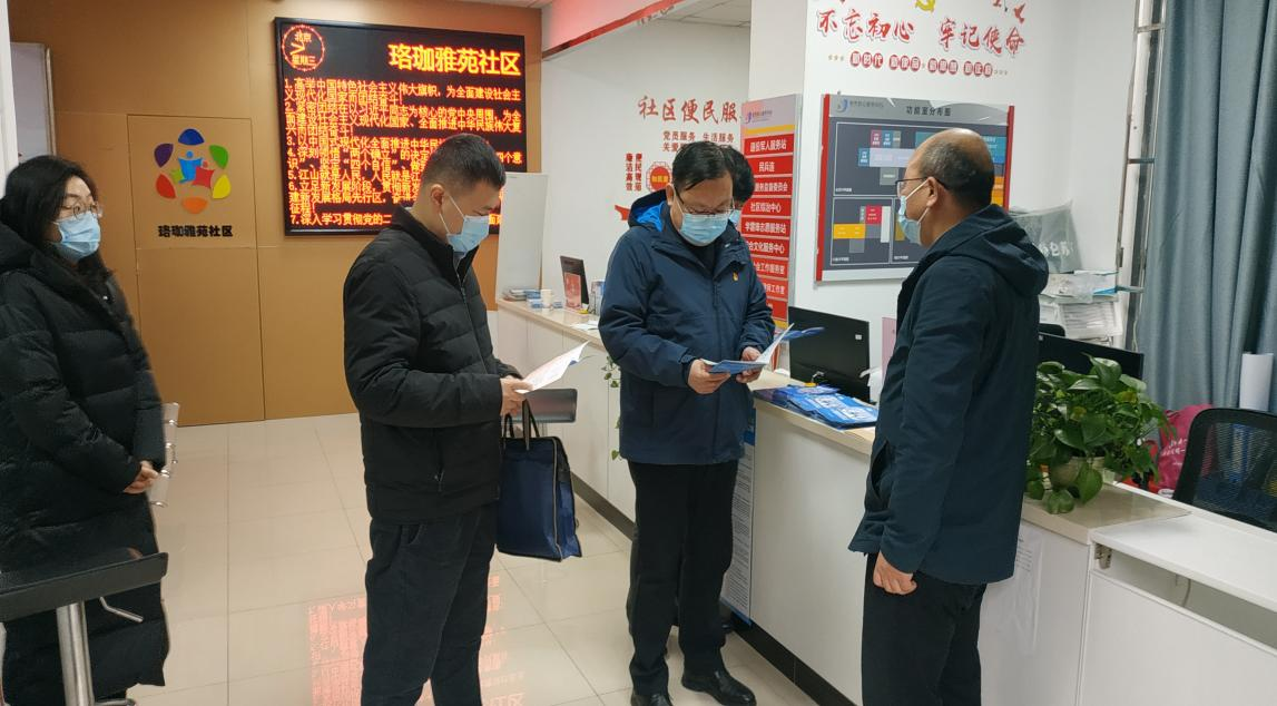 2月22日,院党委书记、院长王玉才率副院长黄泽钧、纪委书记江山以及党办、机电工程系负责人、教师党员等一行7人走访调研对口联系社区-珞珈雅苑社区,了解社区当前医保改革政策宣传和社区建设情况,查看社区便民服务点情况,传达上级关于党员干部下沉社区相关指示要求,就今后社区共建工作进行探讨。
