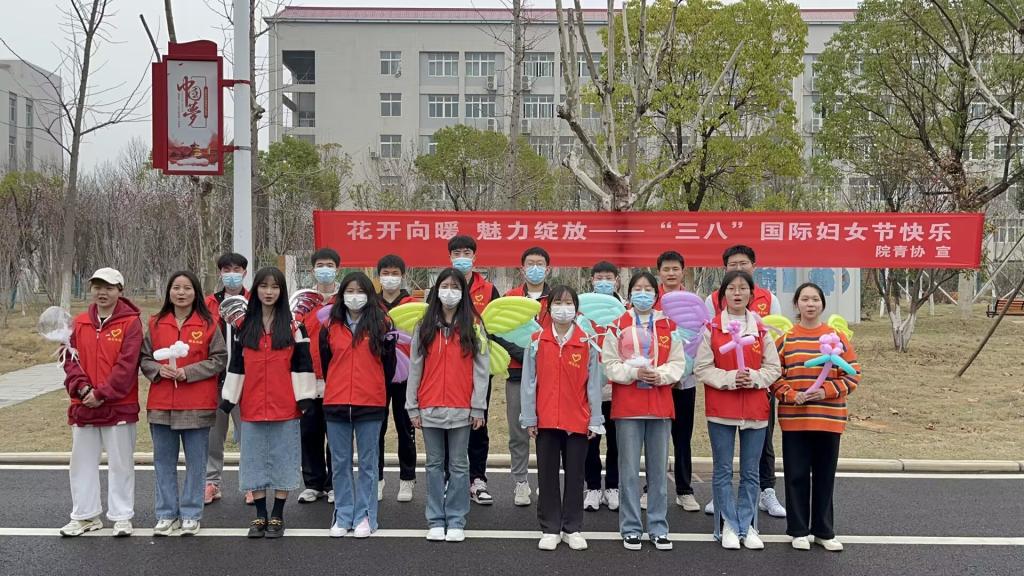 3月8日当天,学院青协志愿者们还在南湖校区和汤逊湖校区同时为学院全体女老师和同学们制作手工气球,致敬“她”力量,高举“自尊、自信、自立、自强”的大旗,创造新时代的辉煌业绩。