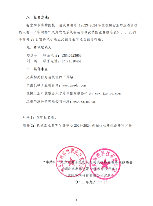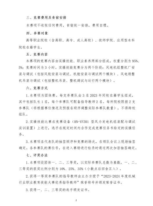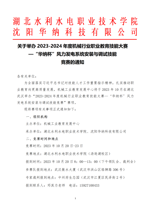 关于举办2023-2024年度“华纳杯”风力发电系统安装与调试技能竞赛的通知