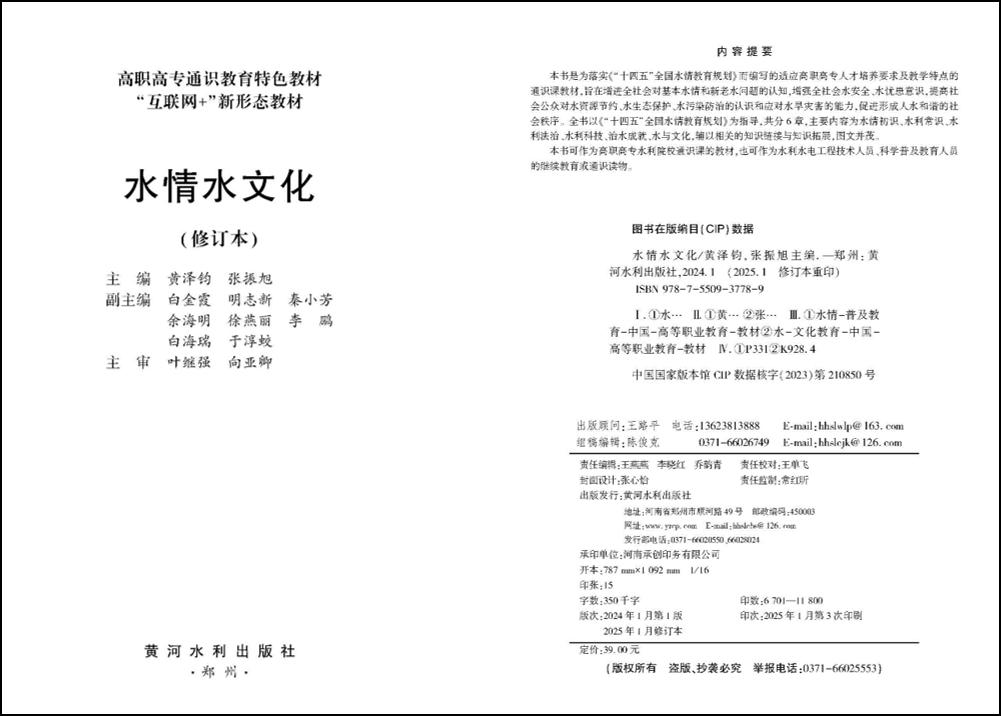 2025年1月,随着新政策、新规范、新技术的应用,为保证教材的与时俱进,更好适应学生发展需要,对教材进行了部分更新与修订,出版“修订本”。主要更新内容有:纳入2024年度长江流域联合调度水工程内容,2023水资源公报公布的相关数据,世界水日与中国水周主题,世界灌溉工程遗产数量及名目等,修正了部分思考与拓展内容,更新了参考文献。