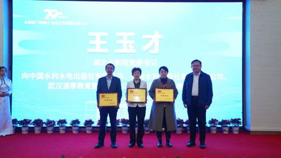 在签约仪式上,黄河水利出版社有限责任公司社长胡志杨作为图书捐赠代表讲话;党委书记王玉才为图书捐赠单位颁发图书捐赠纪念牌。