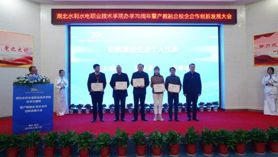 党委副书记、院长姚祖军宣读职教集团突出贡献单位,先进单位、个人代表的决定。省水利厅党组成员、副厅长焦泰文和洪山区副区长袁永康分别为受表彰个人和单位颁奖。