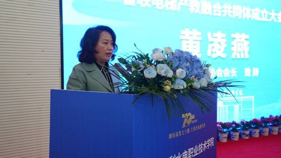 湖北省电梯协会会长黄凌燕在致辞中表示,今天共同见证了智联电梯行业产教融合共同体的成立,这是电梯行业发展的一个重要里程碑,通过这个平台,不断加强企业与学校之间的合作,推动产教融合,提高教育质量。通过共享资源,共享信息,共享经验,共同推动电梯行业的发展。