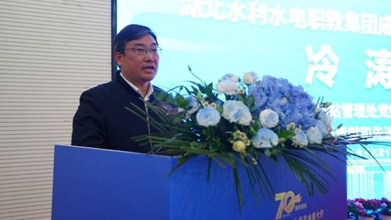 随后,湖北省樊口电排站管理处党委书记、处长冷涛作为职教集团突出贡献和先进单位代表进行交流发言。