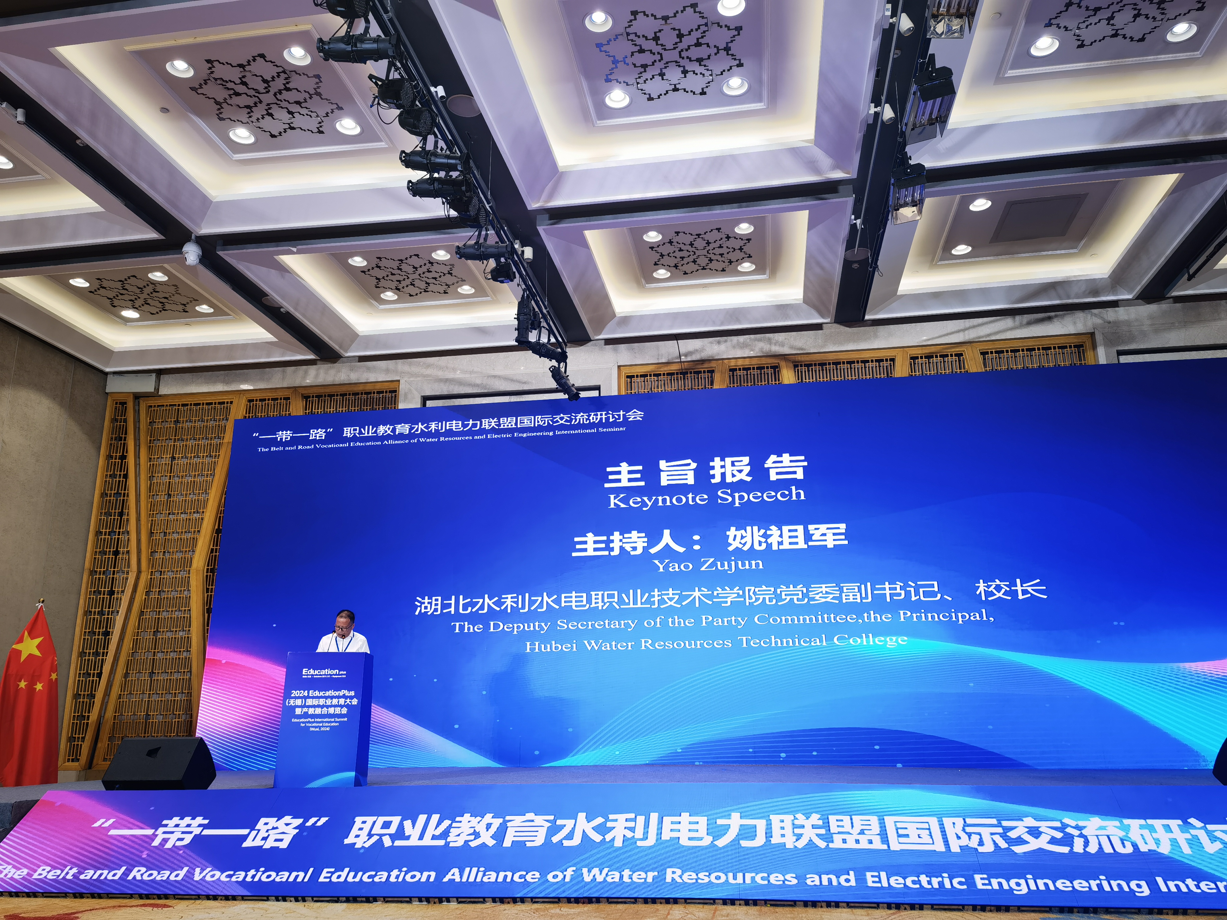 9月11日至12日,党委副书记、校长姚祖军受邀参加在江苏无锡举办的2024 EducationPlus(无锡)国际职业教育大会暨产教融合博览会同期论坛“一带一路”职业教育水利电力联盟国际交流研讨会,并主持大会主旨报告环节。