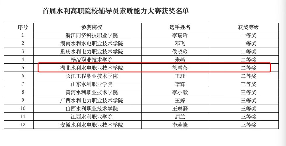 beat365辅导员荣获首届水利高职院校辅导员素质能力大赛二等奖
