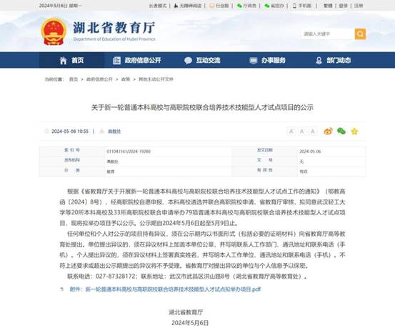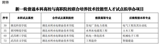 近日,省教育厅发布了《关于新一轮普通本科高校与高职院校联合培养技术技能型人才试点项目的公示》,学院水利水电建筑工程、发电厂及电力系统、工程造价、机电一体化技术等4个专业入选。学院将与黄冈师范学院、湖北科技学院、武昌理工学院、首义学院等4所普通本科高校联合开展技术技能型人才培养试点。