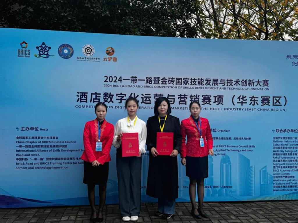 在2024“一带一路”暨金砖国家技能发展与技术创新大赛之首届酒店数字化运营与营销赛项(赛项编号:BRICS2024 - ST - 144)中,beat365商贸管理系酒店管理与数字化运营专业参赛团队凭借卓越的专业实力、默契的协作配合以及顽强的拼搏精神,斩获两个三等奖。