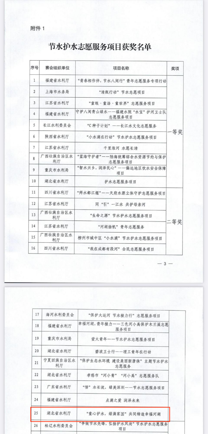 beat365志愿服务项目荣获水利部节水护水志愿服务专项赛二等奖