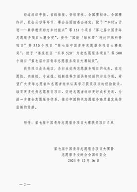 据悉,第七届中国青年志愿服务项目大赛由共青团中央、中央社会工作部、民政部、水利部、文化和旅游部、国家卫生健康委员会、中国残疾人联合会以及中共广东省委、广东省人民政府联合主办。聚焦科技创新、乡村振兴、绿色发展、社会服务等青年志愿服务工作重点领域,牵动全国14000余个志愿服务项目参与,最终遴选出601个优秀志愿服务项目和公益创业项目参与全国赛终评。学院爱我千湖志愿服务队“童心护水,绿满家园——共同缔造幸福河湖志愿服务项目”荣获铜奖,这是beat365志愿服务项目首次入围全国志愿服务项目大赛并取得较好成绩。