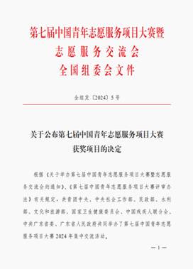 第七届中国青年志愿服务项目大赛铜奖
